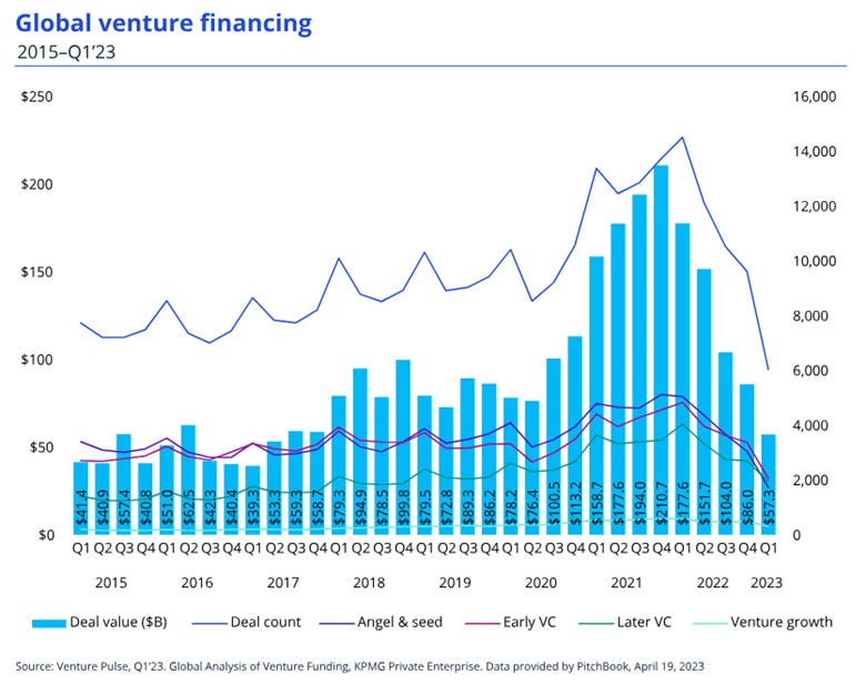 Then, in March, Founders Fund (another legendary firm) announced that their fundraising target for the latest fund would be cut in half – from $1.8B to $900M. Founders is run by Peter Thiel – Co-Founder of PayPal, early Facebook investor, mother of dragons – if he can’t raise the funds he’s targeting, then how is everyone else doing on fundraising?